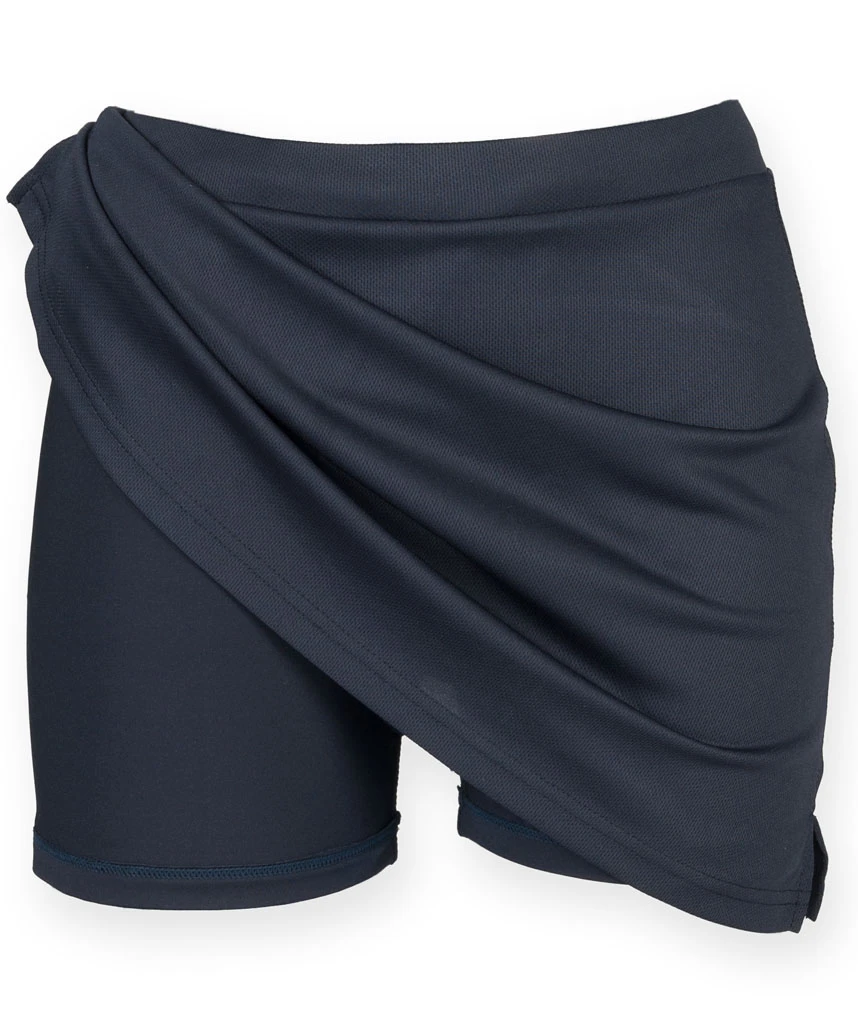 - 100% polyester skirt. 88% polyester/12% elastane pants