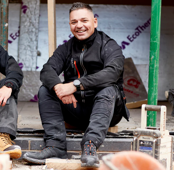 - Water-resistant fabric with 4-way flex for maximum movement